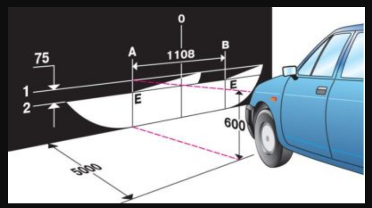 Дальше следует включить ближний свет, посмотреть расположение светотеневой границы луча. Когда она выходит за пределы лазерной линии, это означает, что фарам необходима настройка. К тому же, свет фар слепит встречных водителей, уменьшая при этом и вам видимость. При нижнем освещении, трасса будет видна лишь перед машиной. Это также плохо.